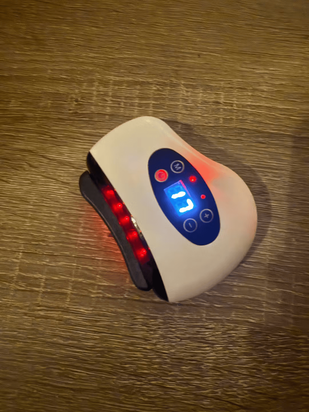 The device combines gentle heat, vibration, and light therapy to help relax muscles and support circulation. It glides smoothly over the skin, delivering targeted comfort without harsh pressure. Simply turn it on, choose your setting, and enjoy a soothing massage.