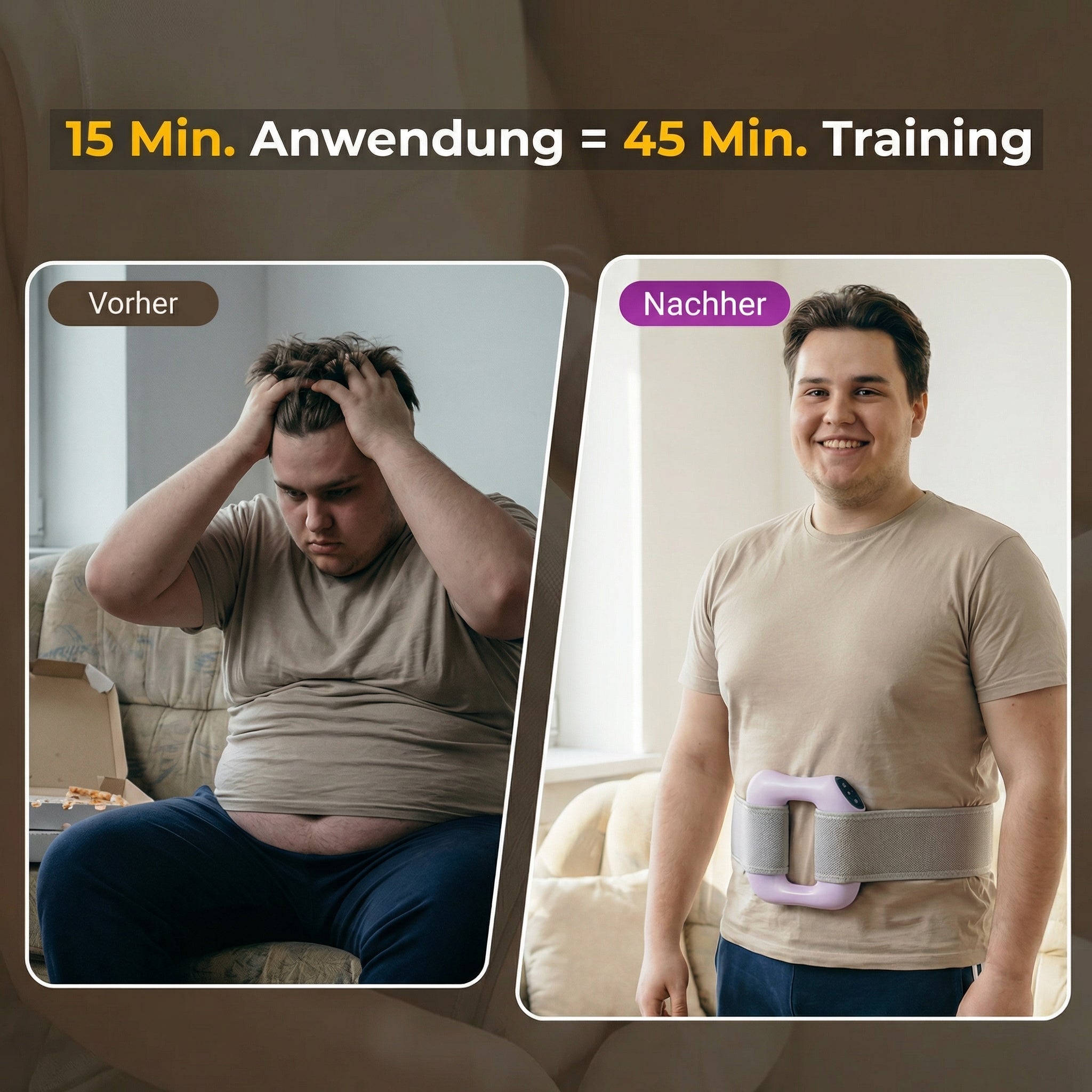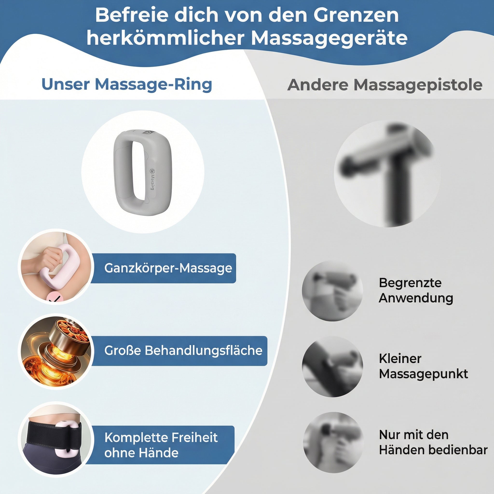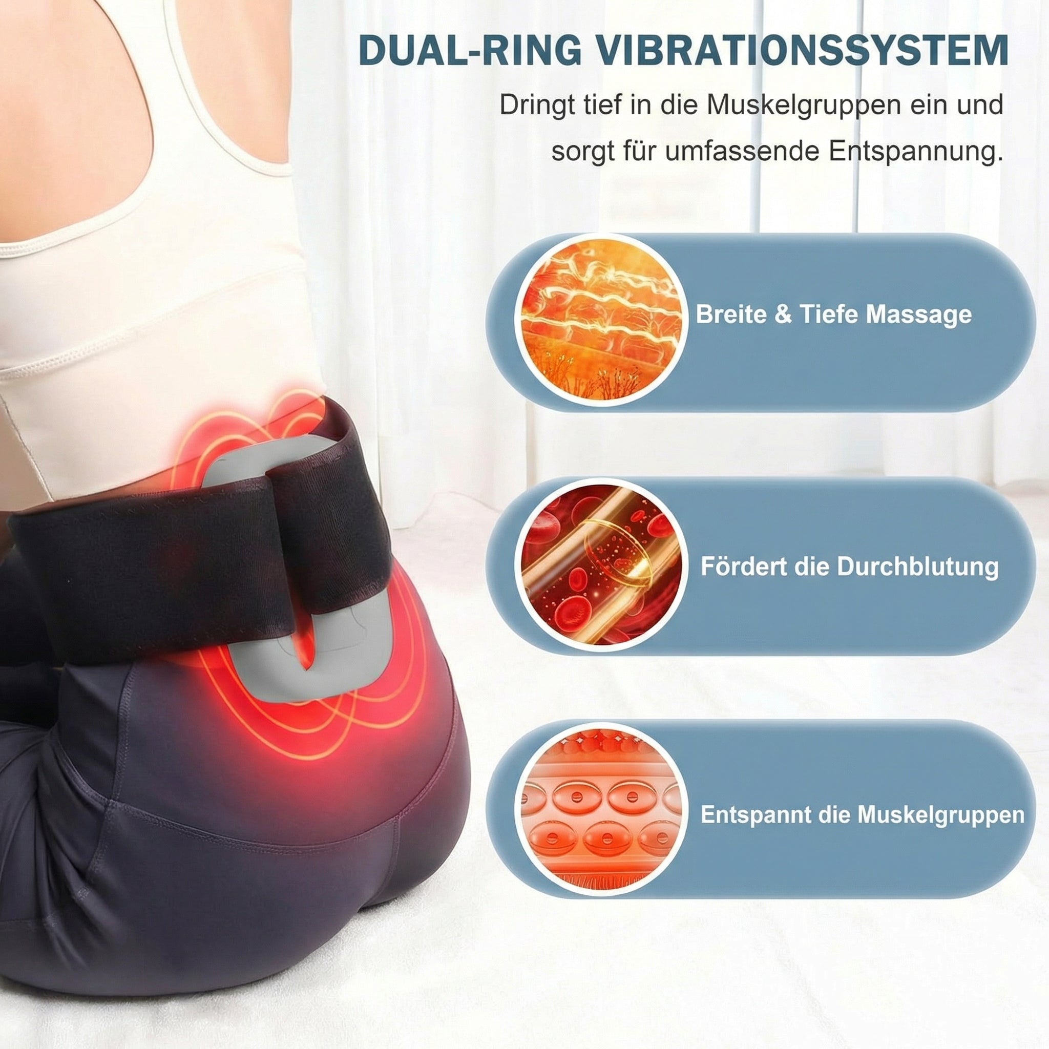 Dein Körper verdient mehr als anstrengende Workouts und langsame Ergebnisse. Diese Dual-Ring-Vibrationsmassage aktiviert tiefe Muskeln, fördert die Durchblutung und hilft deiner Taille, sich leichter und straffer anzufühlen. Nur wenige Minuten täglich – und dein Körper beginnt endlich zu reagieren.